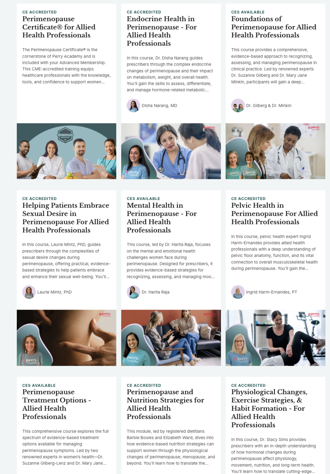 Yes. When you join as a Perry Academy Member, you receive full access to the Perimenopause Certificate® and all CME/CEU-accredited content included in your tier.